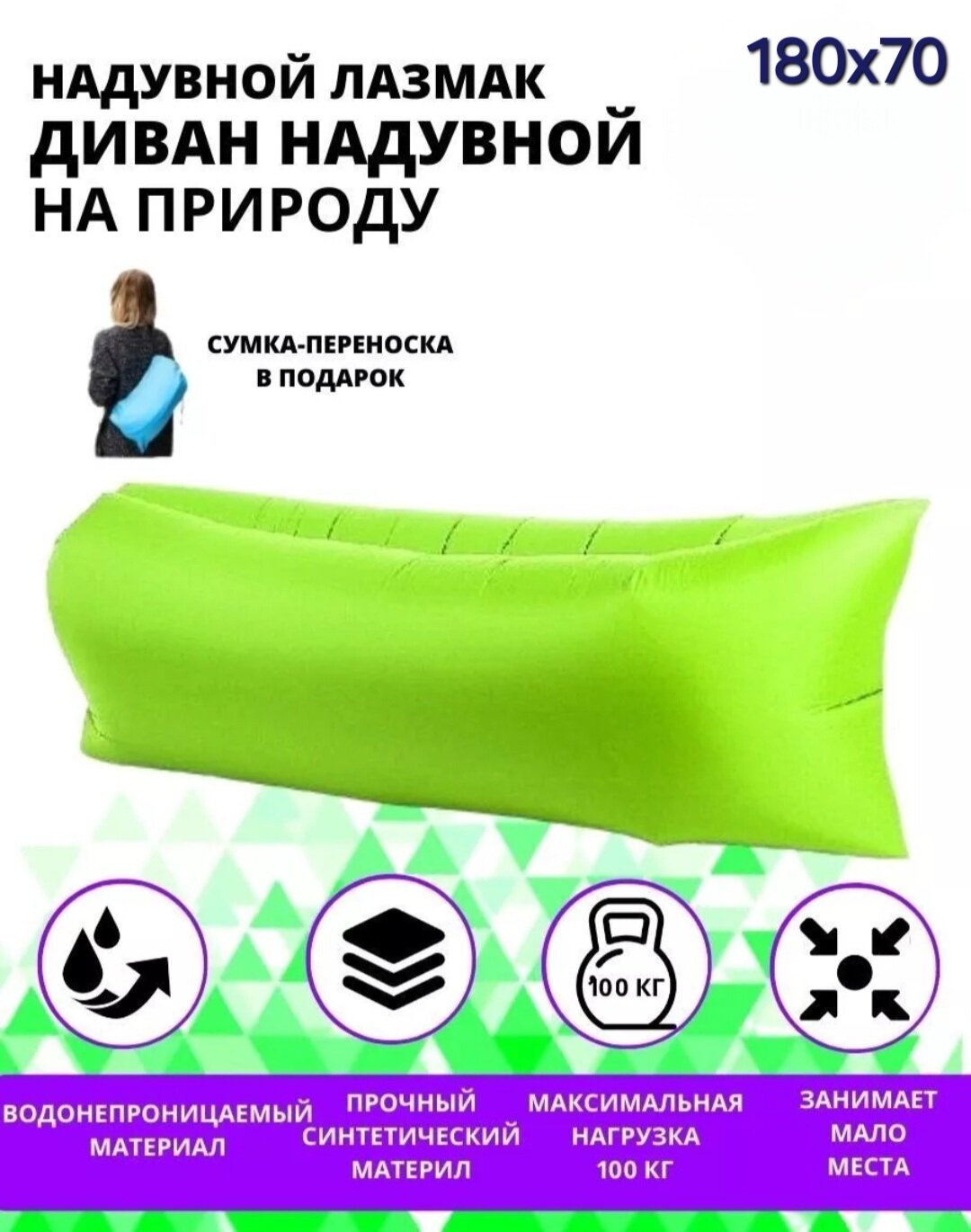 Надувной диван Ламзак 190Т, 180 х 70 х 45 см, цвет салатовый