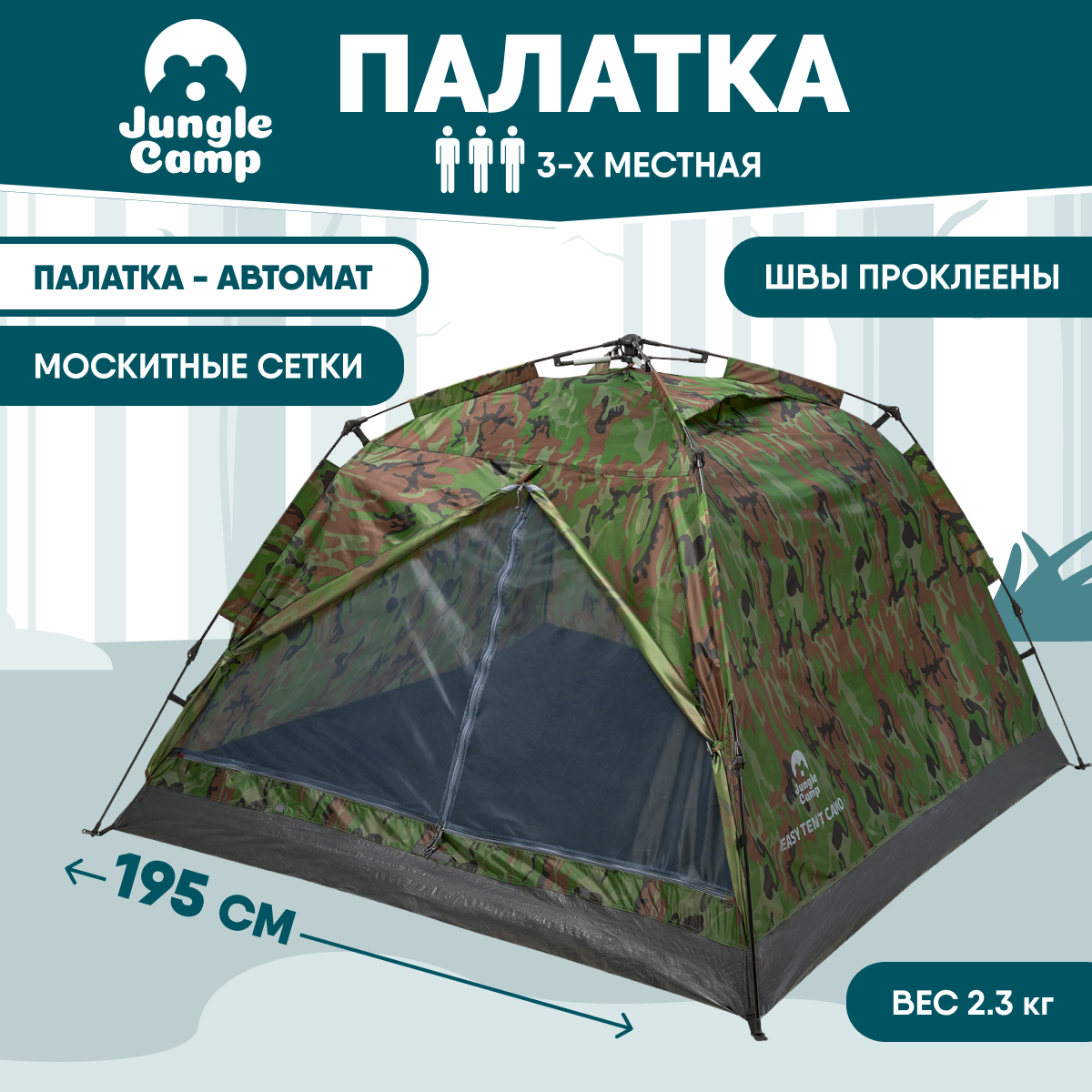 Отзывы на Палатка трехместная JUNGLE CAMP Easy Tent Camo 3, цвет: зеленый/серый