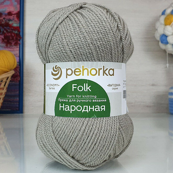 Пряжа Пехорка Народная светло-серый (8), 70%акрил/30%шерсть, 220м, 100г, 5шт