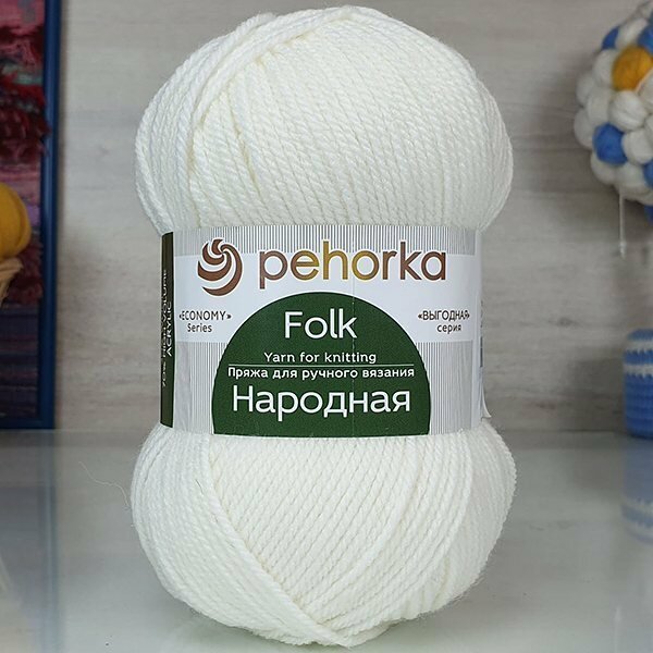 Пряжа Пехорка Народная белый (001), 70%акрил/30%шерсть, 220м, 100г, 1шт