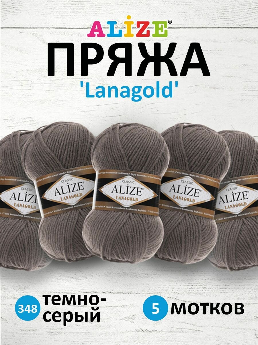 10 цен на Пряжа для вязания Alize Lanagold Classic 348 темно-серый, 100 г, 240 м, 5 штук