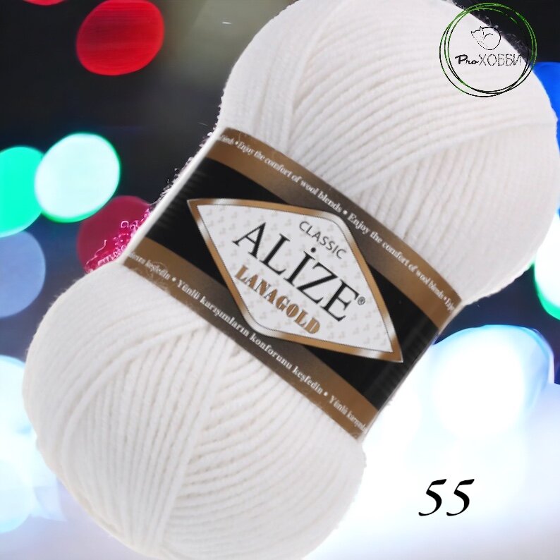 Пряжа Alize Lanagold (Ланаголд) - 1 моток Цвет: 55 белый 49% шерсть, 51% акрил 100г 240м