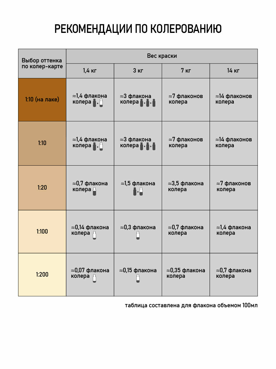 Колеровочная паста коллекция цв. бежевый 0,1л бутылка ПЭТ информация: