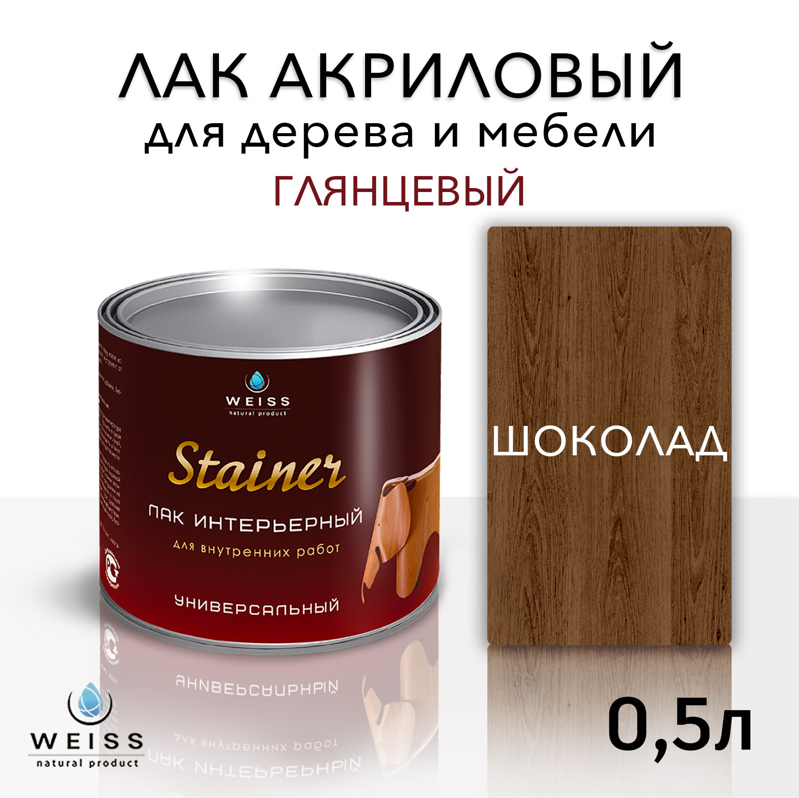 Лак для дерева акриловый венге, глянцевый, Weiss natural product, без запаха, самовыравнивающийся, 0.5л 700 ₽