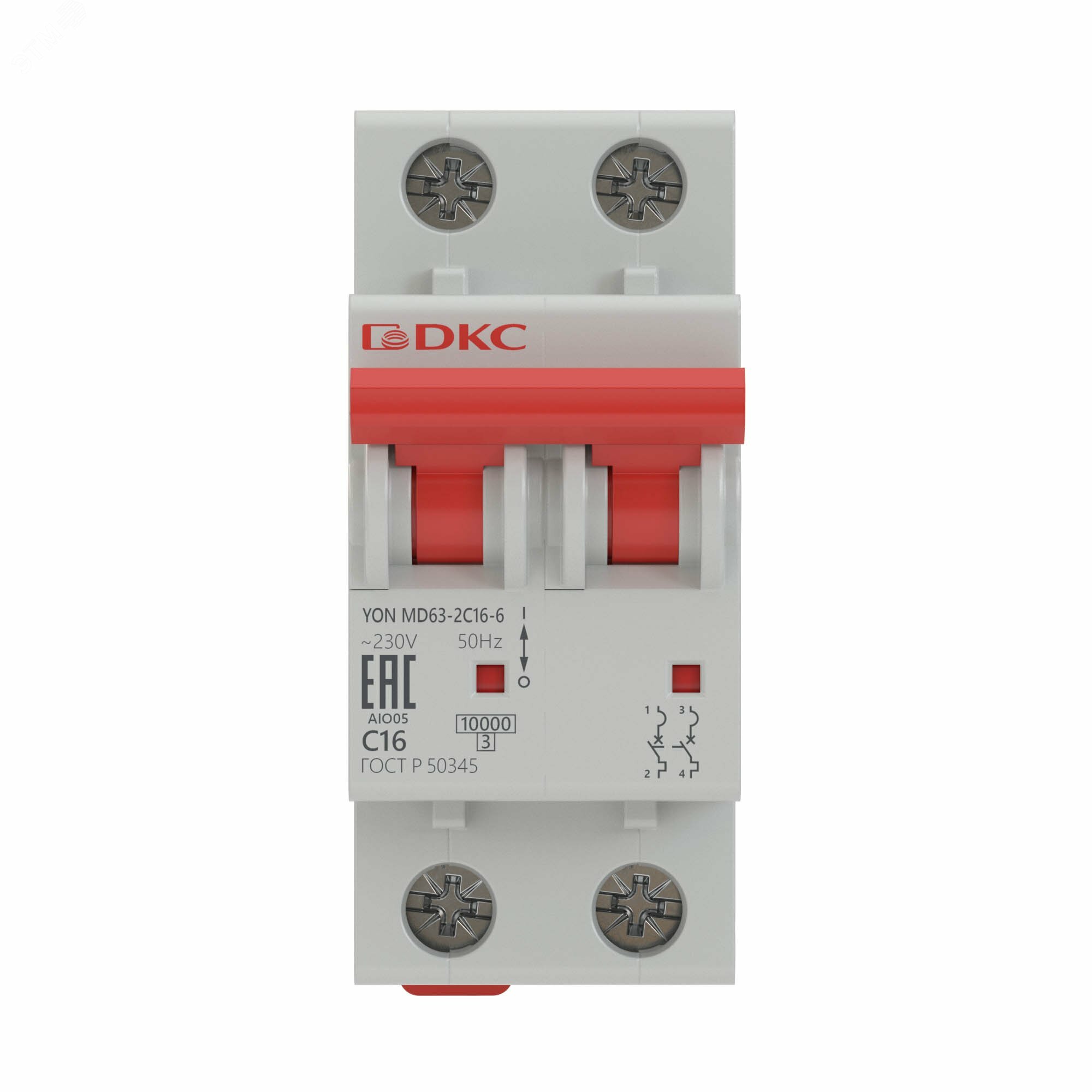 MD63-2C16-6 Автоматический выключатель DKC YON MD63 16А 2п 6кА, C