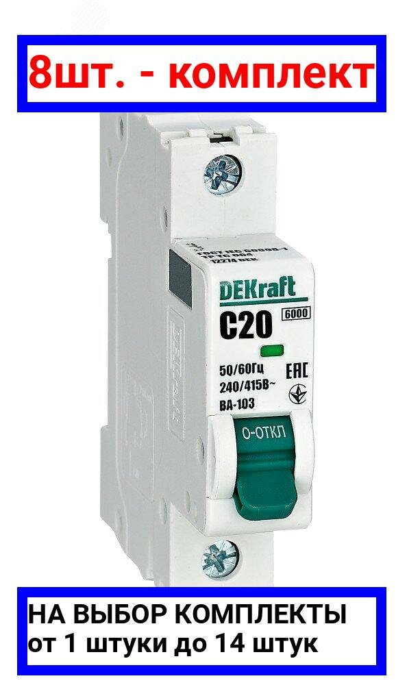 8шт. - Выключатель автоматический 1Р 20А х-ка C ВА-103 6кА / Dekraft; арт. 12274DEK; оригинал / - комплект 8шт информация: