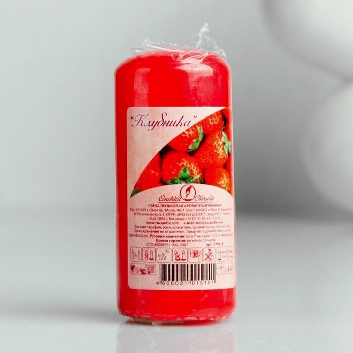 Омский свечной завод Свеча - цилиндр ароматическая "Клубника" 4х9 см