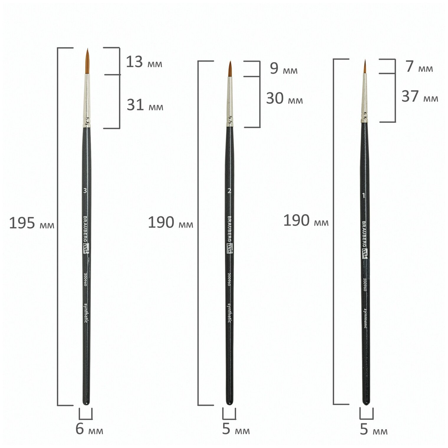 Кисти для рисования художественные набор 3 штуки, синтетика круглые № 1 2 3, Brauberg Art Debut, 201041 169 ₽
