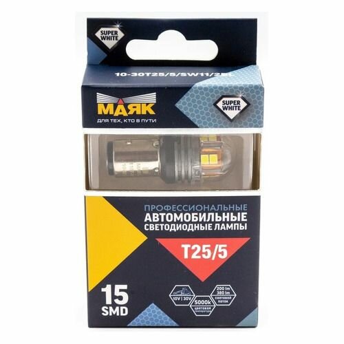 Лампа Светодиодная 12V T25/5 W Bay15d Маяк Super White 2 Шт. Блистер 10-30T25/5/Sw11/2Bl Маяк арт. 10-30T25/5/SW11/2BL