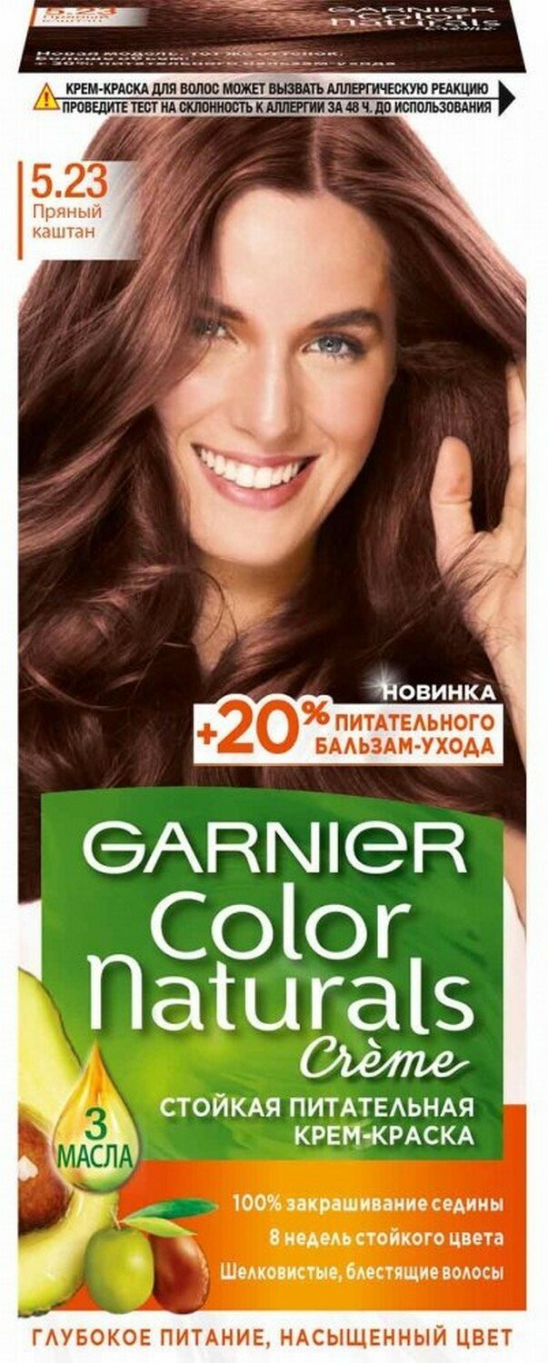 Garnier Стойкая питательная крем-краска для волос "Color Naturals" с 3 маслами, оттенок 5.23, Пряный каштан, 110 мл