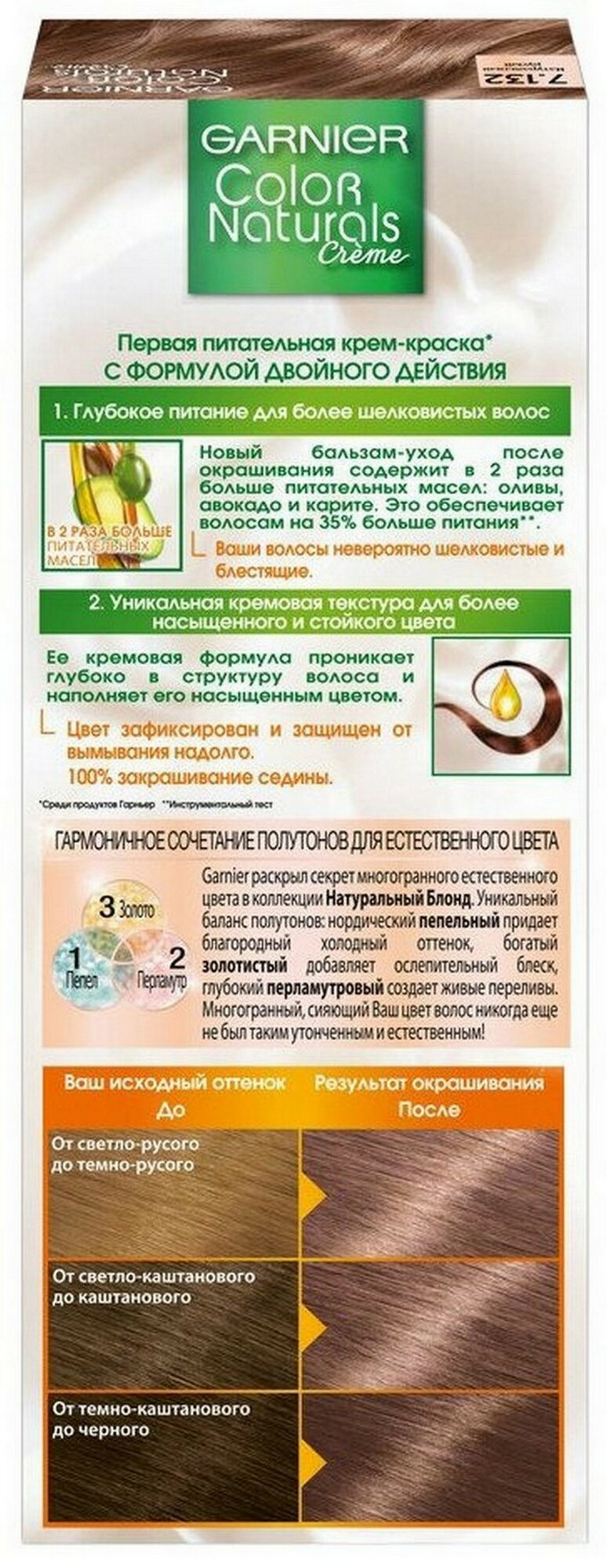 GARNIER Color Naturals стойкая питательная крем-краска для волос, 7.132, Натуральный русый, 110 мл - 6 шт информация: