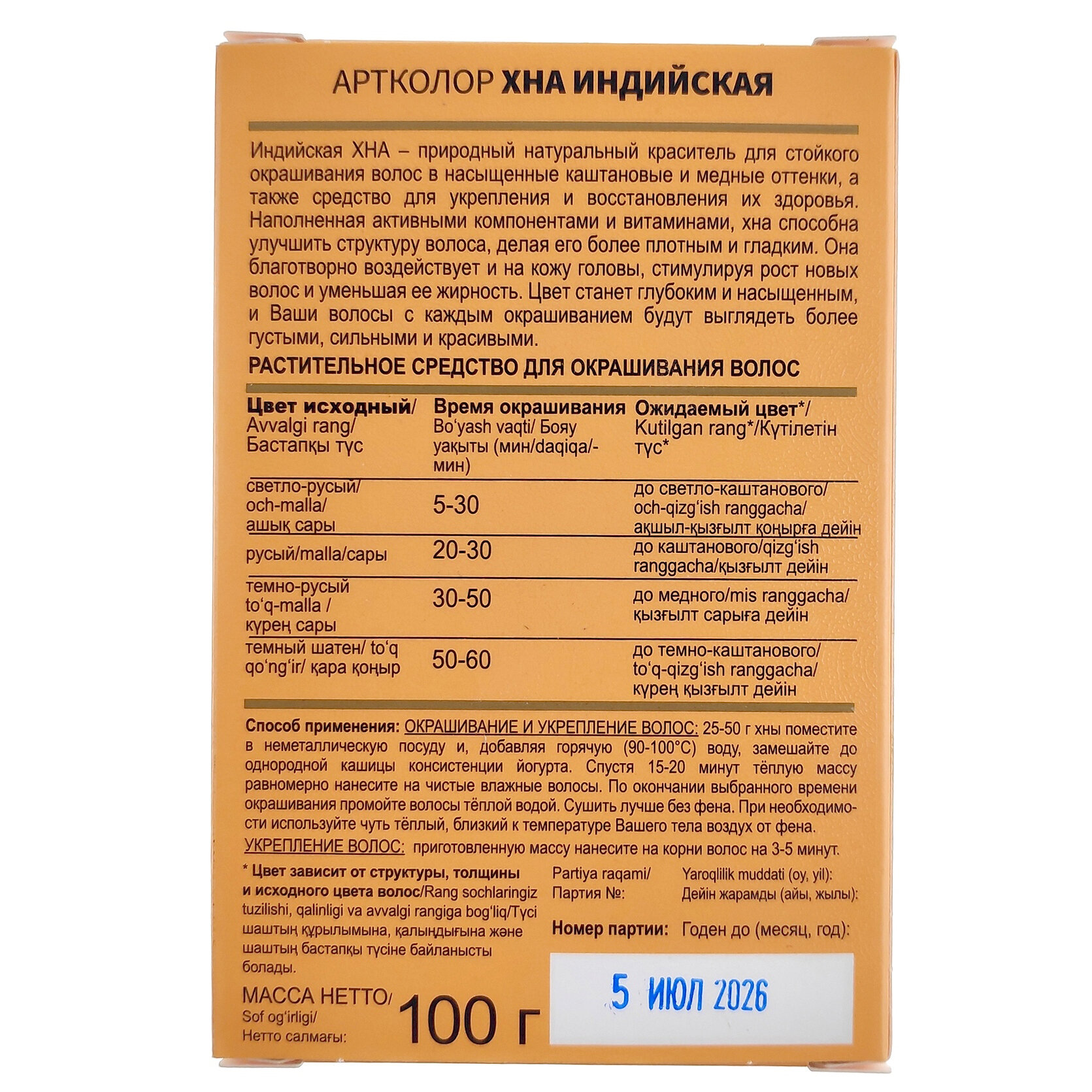 Артколор Хна для волос индийская, 100гр. информация: