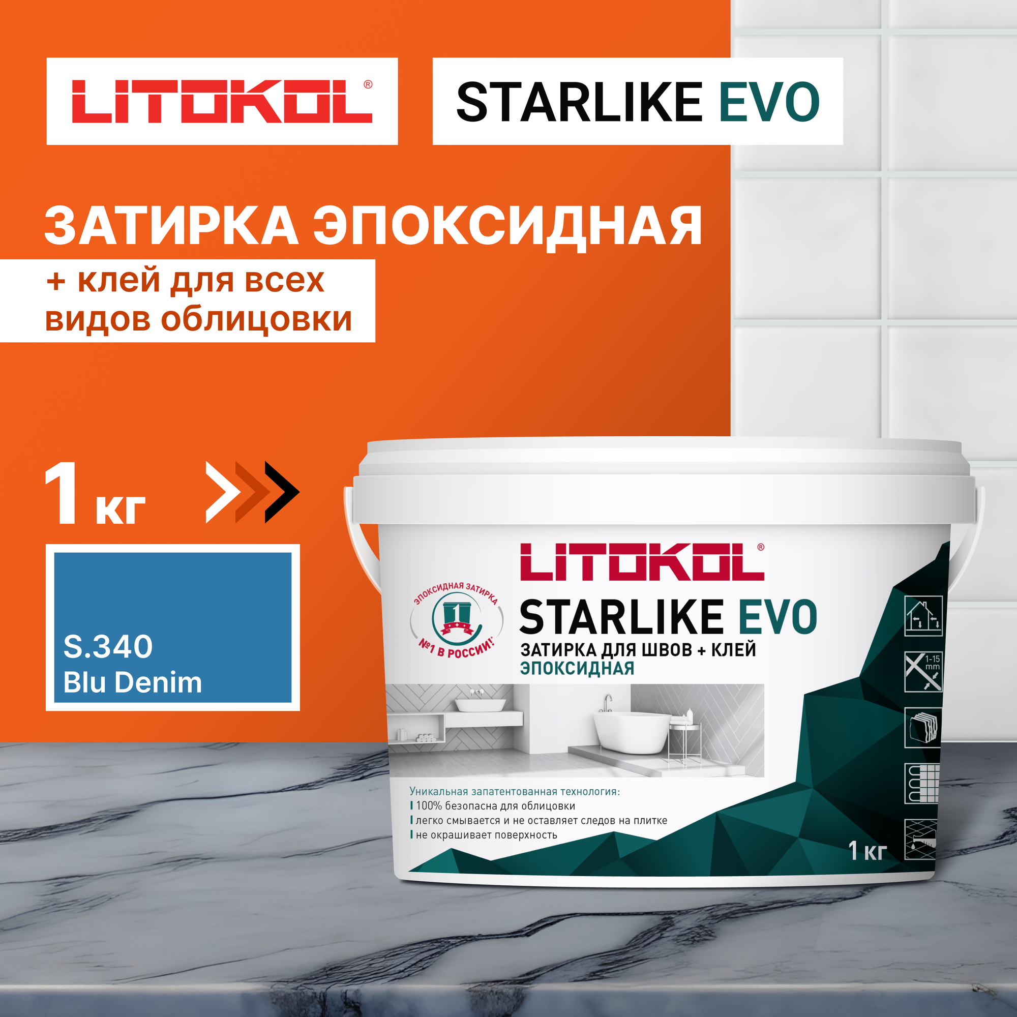 Эпоксидная затирочная смесь LITOKOL STARLIKE EVO S.340 Blu Denim, 1 кг информация: