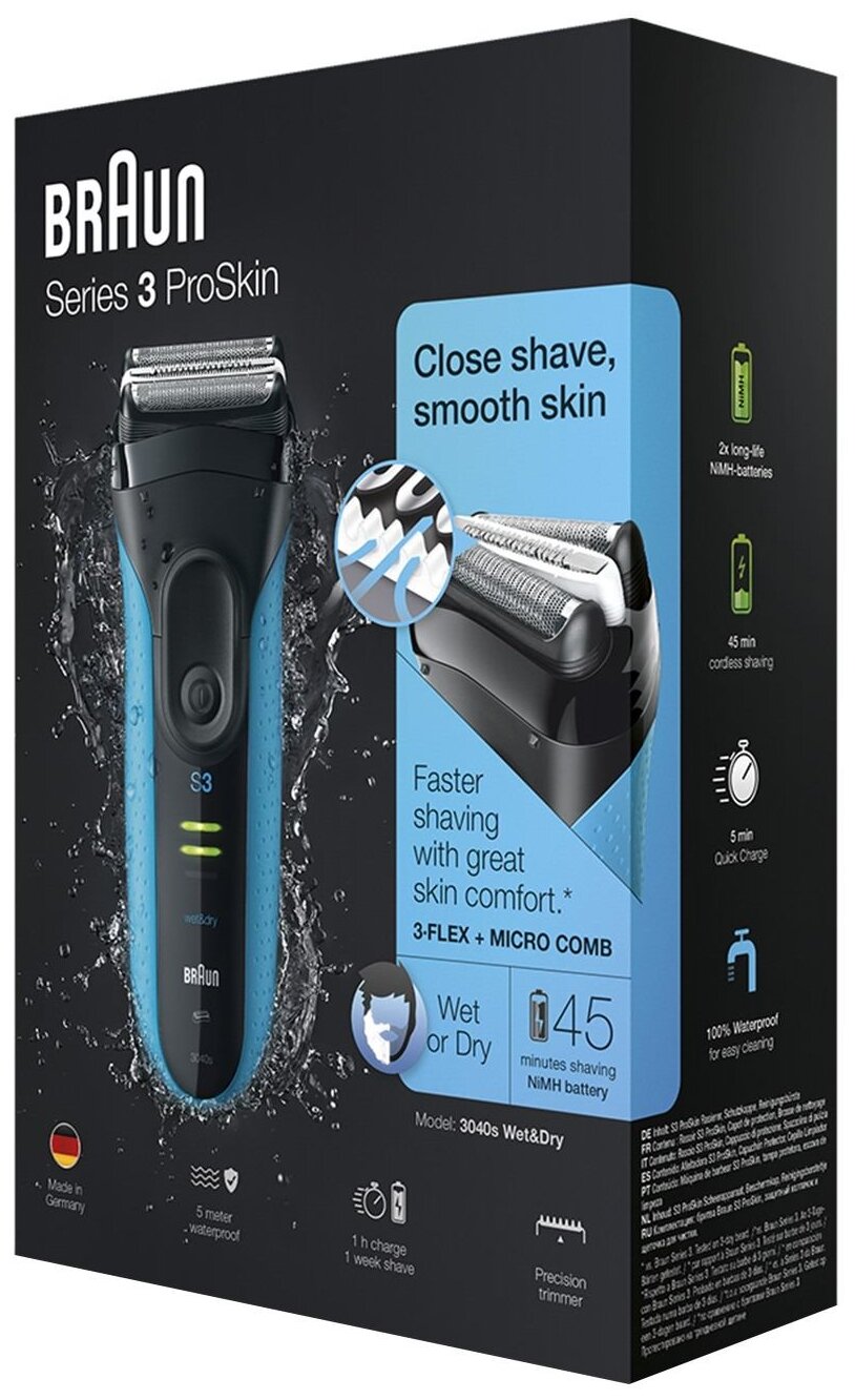 Электробритва Braun 3040s Series 3 ProSkin, голубой/черный