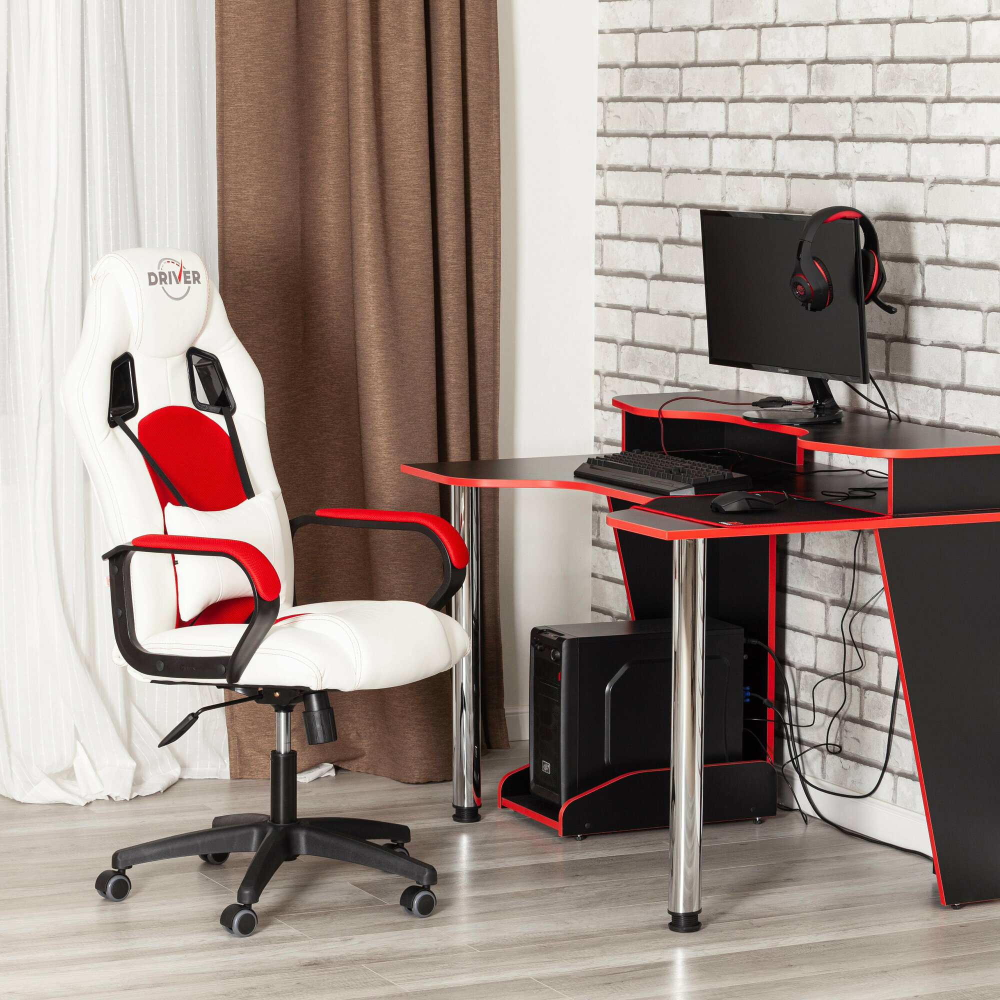 Кресло игровое Driver, Цвет обивки: белый, красный, Цвет корпуса: черный