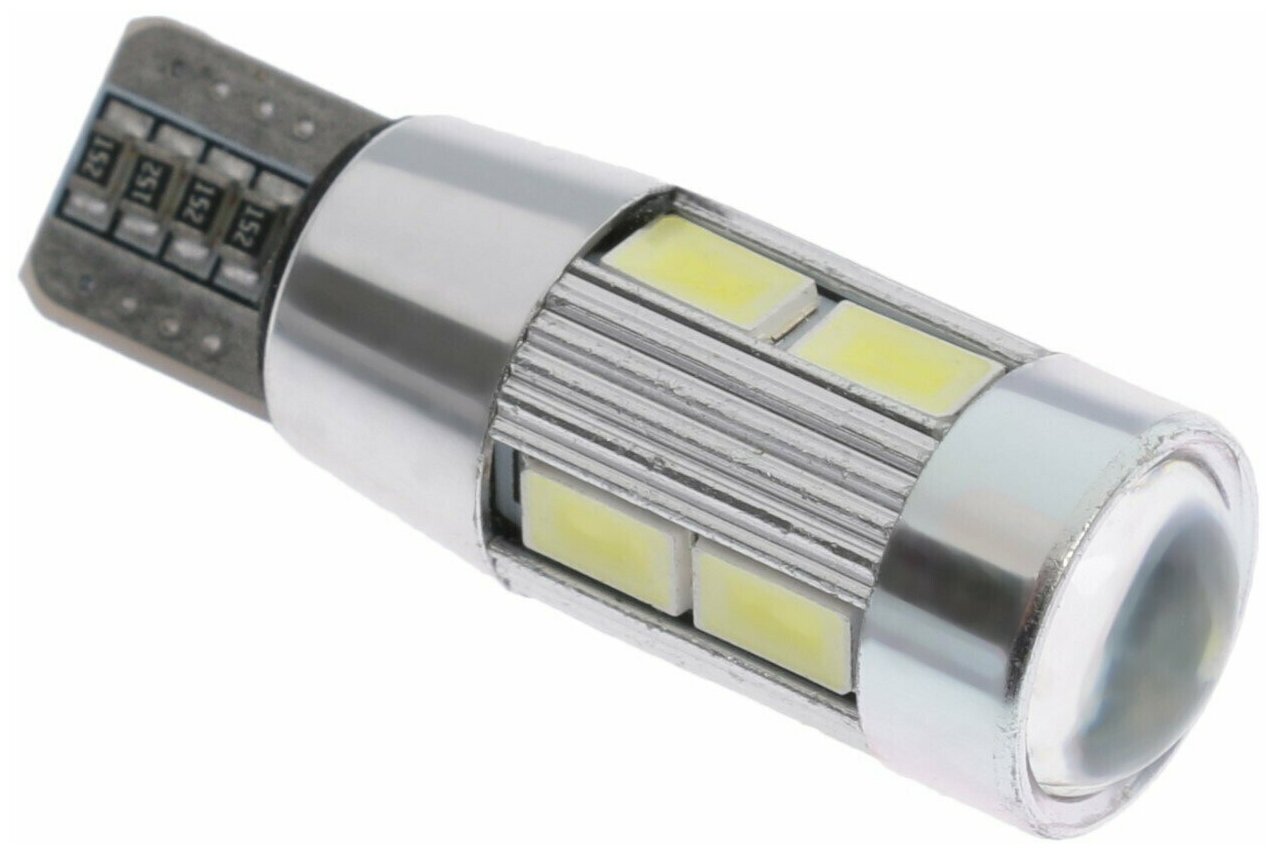 Cartage Автолампа светодиодная T10, линза, 10 SMD, 12 В, свет белый