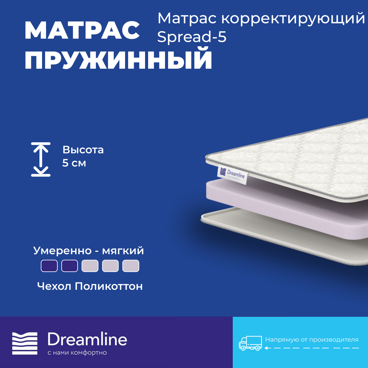 Матрас корректирующий Dreamline Spread 5 150х210 см, беспружинный, поликоттон