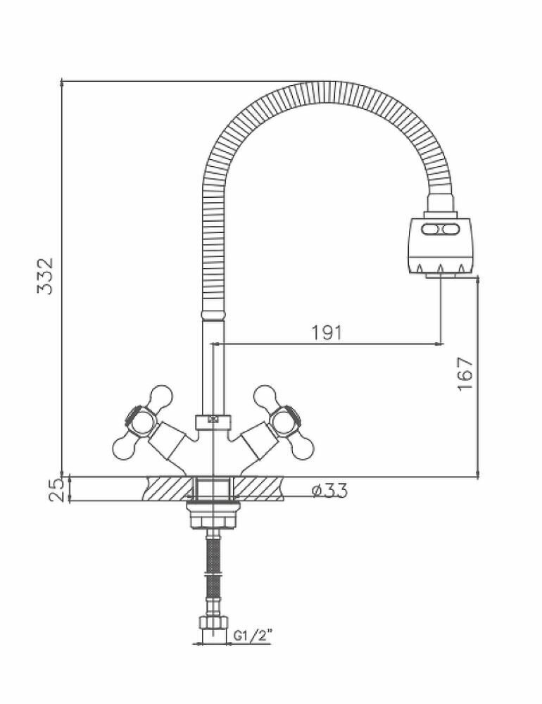 Смеситель CN19 д/кухн 2-ручк, гайка, хром, гиб пов изл, Cron(Китай), арт. CN4319-3