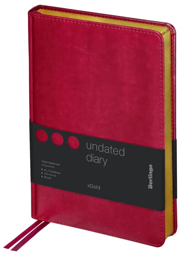 Ежедневник BERLINGO недатированный "xGold", A5, 160 л, кожзам, зол.срез, фуксия