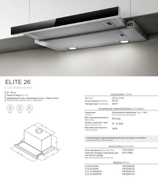 ELICA Вытяжка телескопическая ELICA ELITE 26 IX/A/60 информация: