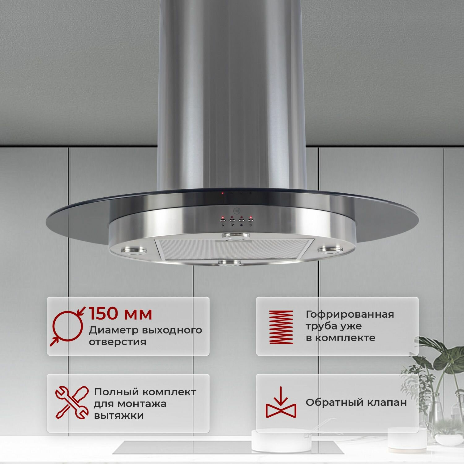 Вытяжка каминная MBS Zebrina 190 Island Glass нержавеющая сталь кнопочное управление (комплект из 3-х коробок) информация: