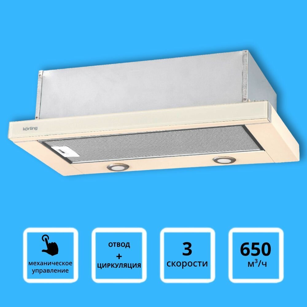 10 цен на Встраиваемая вытяжка с выдвижным экраном Korting KHP 6617 GB, бежевая, алюминиевый жировой фильтр, 3 режима, LED освещение, ширина 60 см