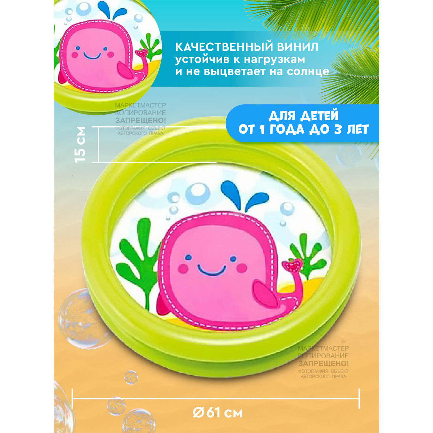Отзывы на Бассейн надувной INTEX "Рыбки", плавательный бассейн, для детей, для дачи, 61х22 см, 1-3 лет, 59409NP/Салатовый
