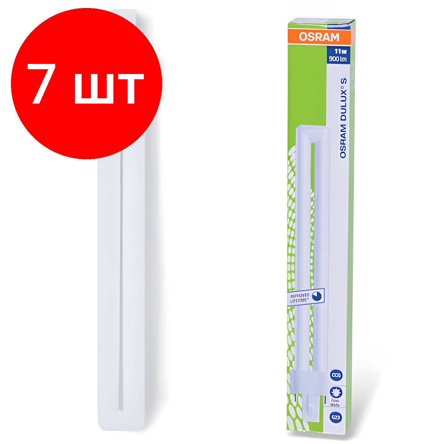 Комплект 7 шт, Лампа люминесцентная OSRAM DULUX S 11W/21-840, 11 Вт, U-образная, холодный белый свет, цоколь G23 информация: