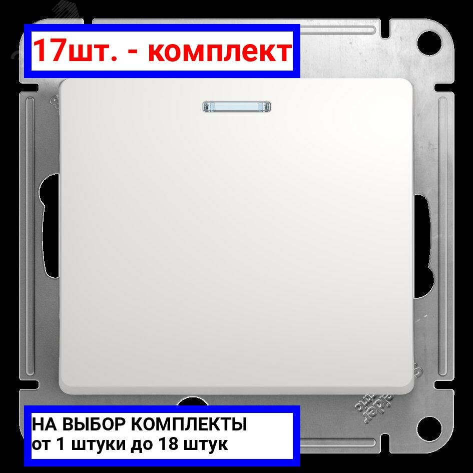 10 цен на 17шт. - Выключатель одноклавишный, с подсветкой, в рамку, схема 1а, белый / Systeme Electric; арт. GSL000113; оригинал / - комплект 17шт
