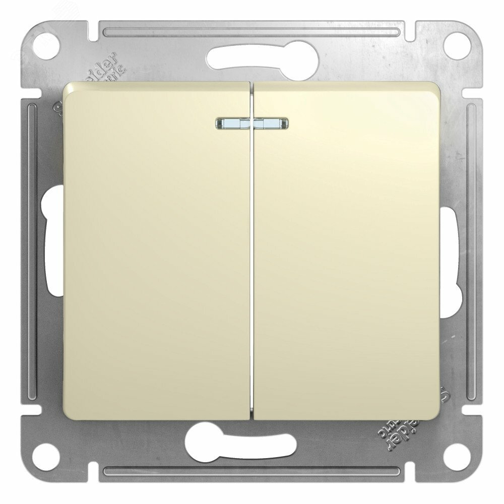 Systeme Electric Glossa Беж Выключатель 2-клавишный с подсветкой, сх.5а, 10АХ GSL000253