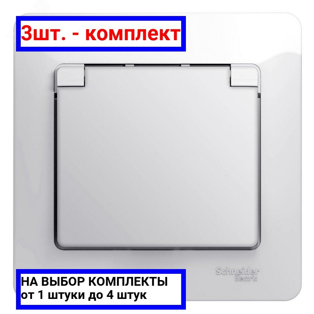 10 цен на 3шт. - GLOSSA Розетка с заземлением со шторками с крышкой белая в сборе IP20 / Systeme Electric; арт. GSL000146; оригинал / - комплект 3шт