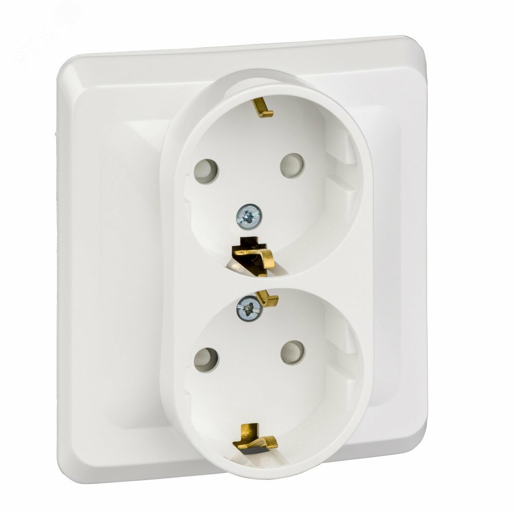 Розетка двойная 2м с заземлением со шторками Этюд белый встроенный монтаж (Schneider Electric), арт. PC16-008B 338 ₽