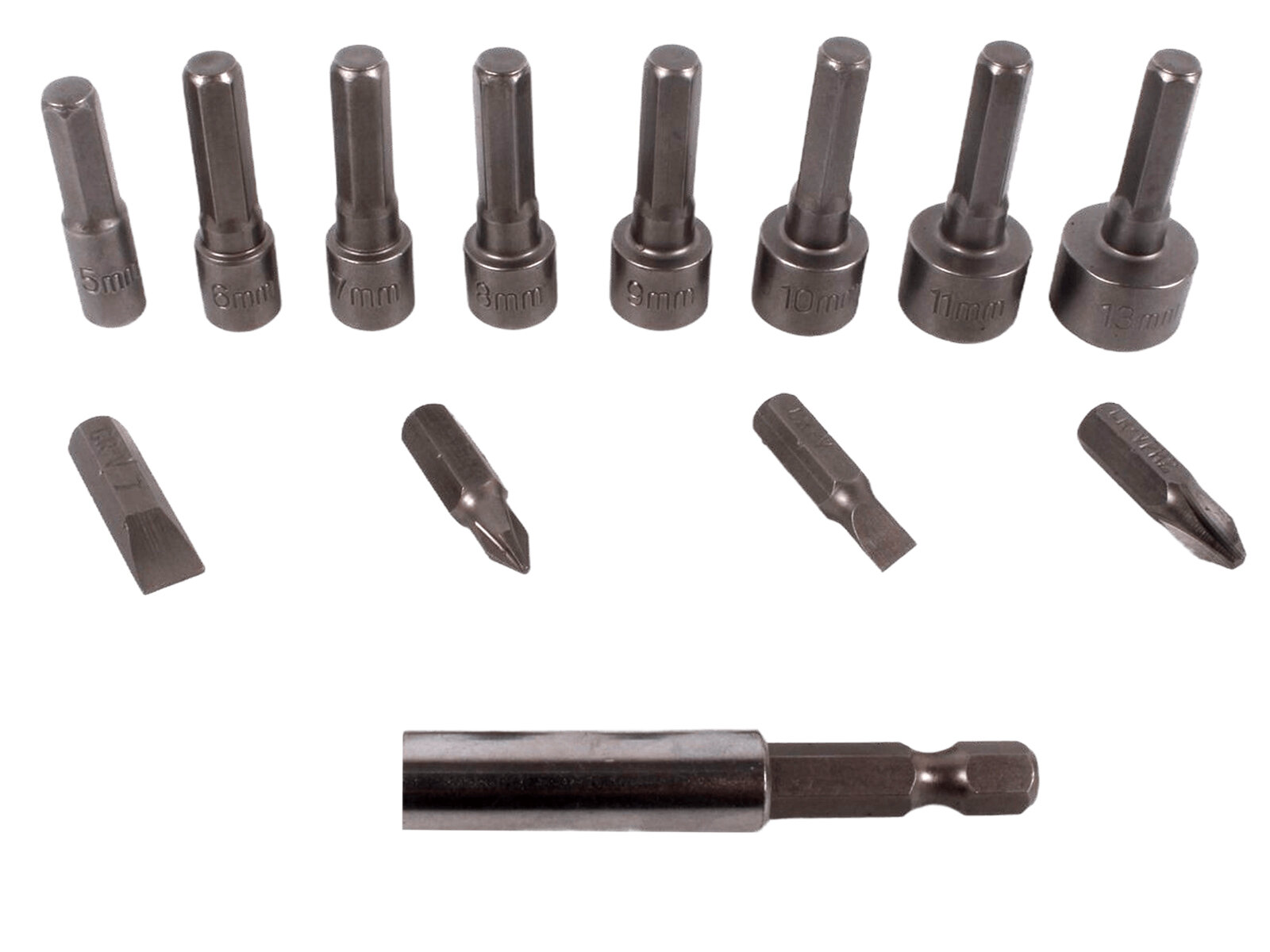 | Биты подробно | SL5, SL7, PH1, PH2; биты с головками: 5, 6, 7, 8, 9, 10, 11, 13 мм |