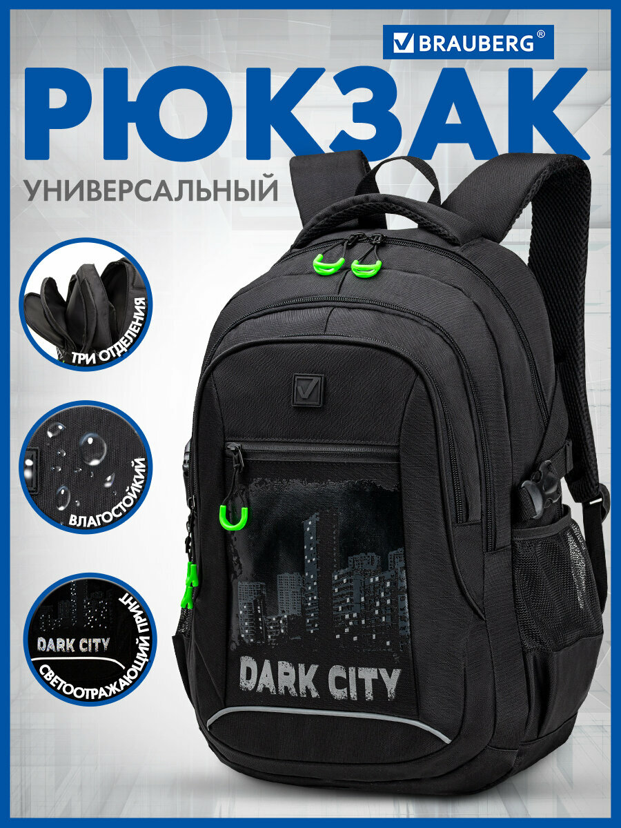 Рюкзак Brauberg Content, 2 отделения, светоотражающий принт "Dark city" 47х33х18 см (270763)