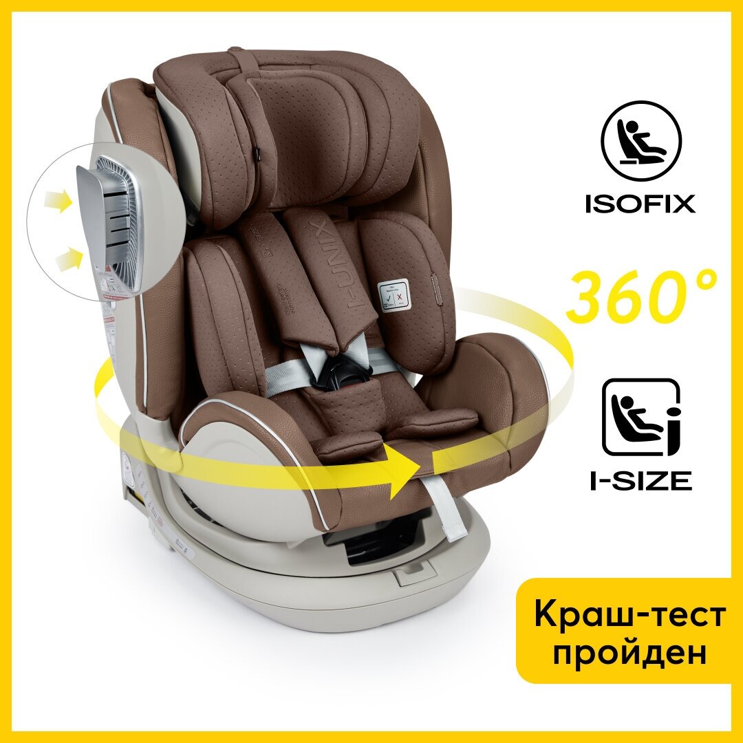 Автокресло детское от 0-12 лет, i-size, поворот на 360, I-Unix Happy Baby, группа 0+/1/2/3(0-36 кг), экокожа, коричневый 15 283 ₽