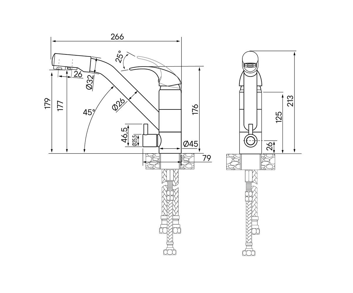 Смеситель для кухни HESSEN, на две воды,бронза, He213017-BR, Paulmark