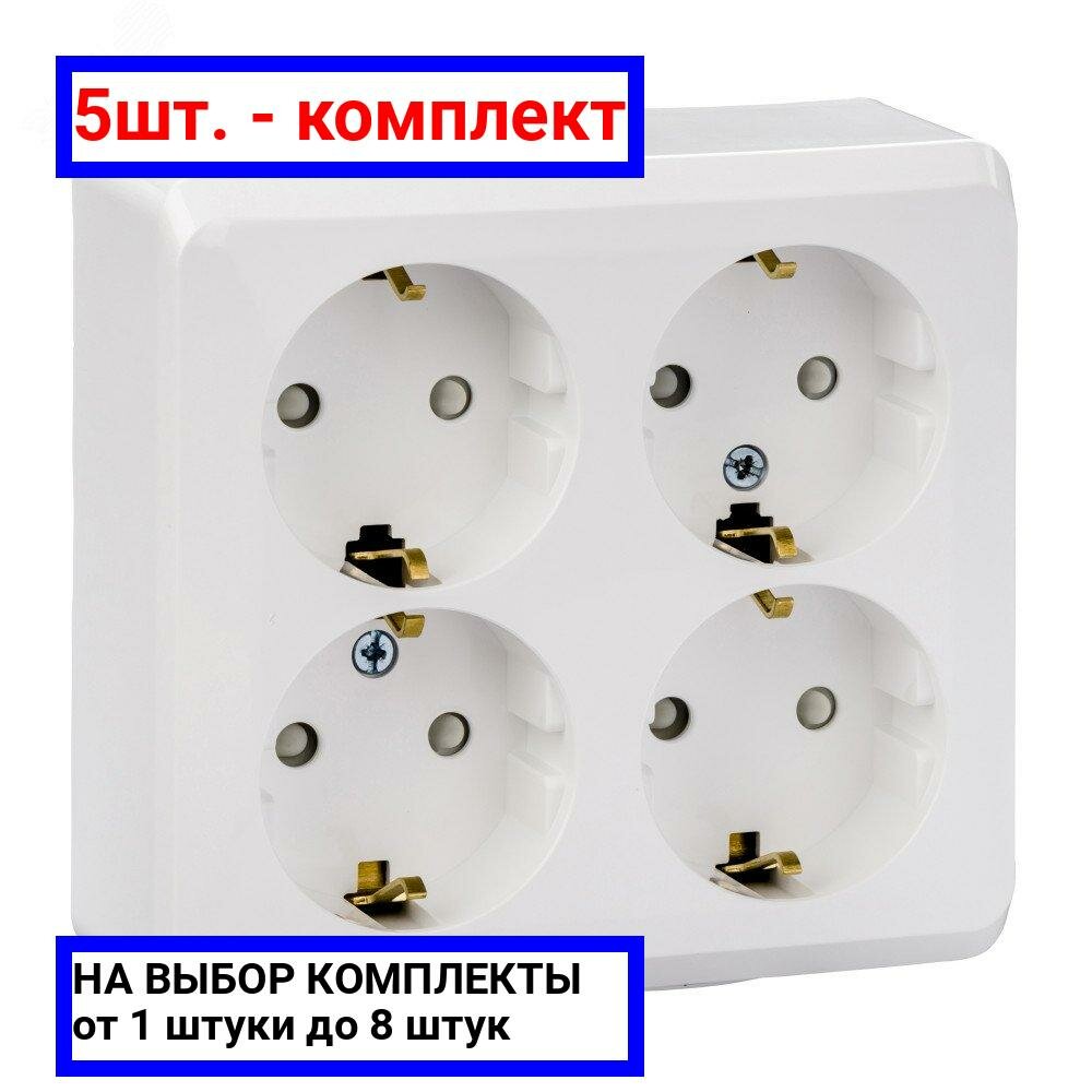 10 цен на 5шт. - Этюд Розетка четырехместная наружная с заземлением со шторками 16А 250B белая / Systeme Electric; арт. PA16-208B; оригинал / - комплект 5шт