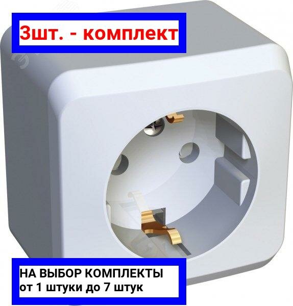 10 цен на 3шт. - Этюд Розетка наружная с заземлением со шторками белая / Systeme Electric; арт. PA16-004B; оригинал / - комплект 3шт