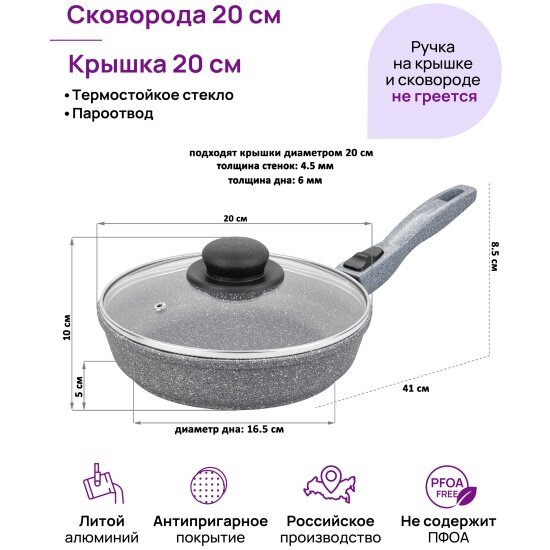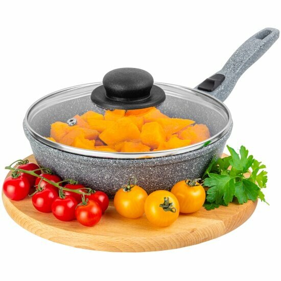Отзывы на Сковорода глубокая Elan Gallery гармония вкуса Серый мрамор, с крышкой, съёмная ручка, 20 см