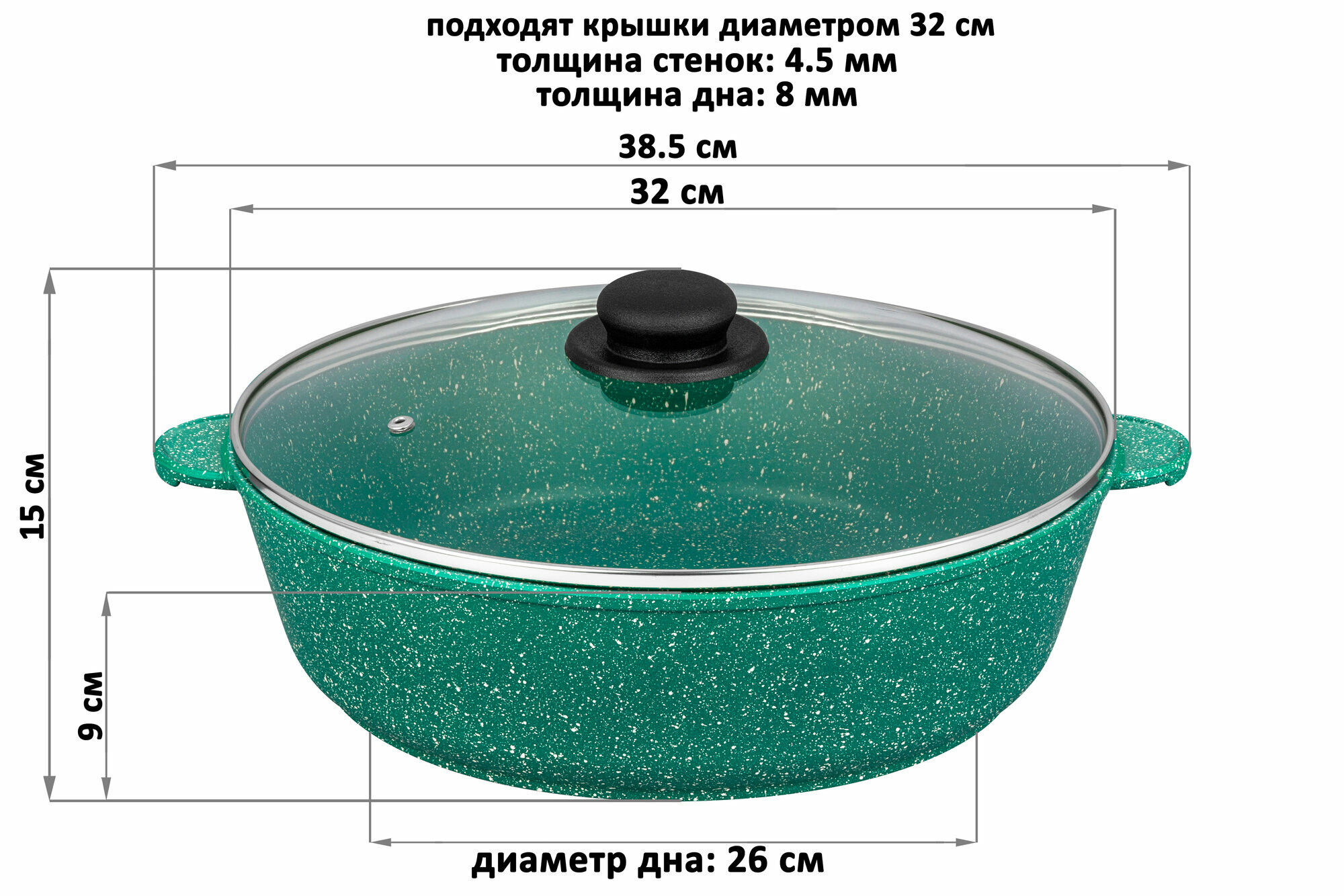 Жаровня-сотейник Elan Gallery гармония вкуса изумруд с крышкой, 5.5 л, 32 см информация: