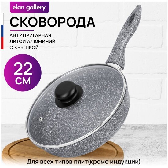 Сковорода глубокая Elan Gallery гармония вкуса Серый мрамор, с крышкой, 22 см информация: