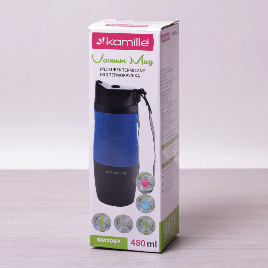 Отзывы на Термокружка Kamille,480мл из нержавеющей стали с TPR-вставкой и ремешком (красная, синяя, коричн., з