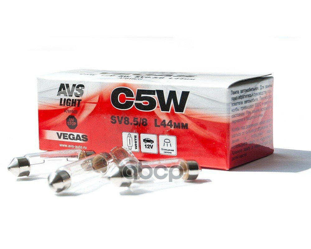 Лампа Avs Vegas 12V.с5w(Sv8.5/8)L44мм. Box 10Шт. AVS арт. A78192S информация: