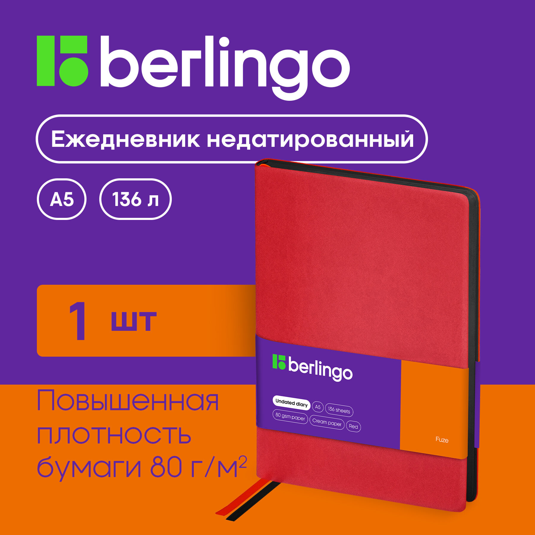 Ежедневник Berlingo Fuze недатированный на 2022-2023 год, А5, 136 листов, красный, цвет бумаги тонированный