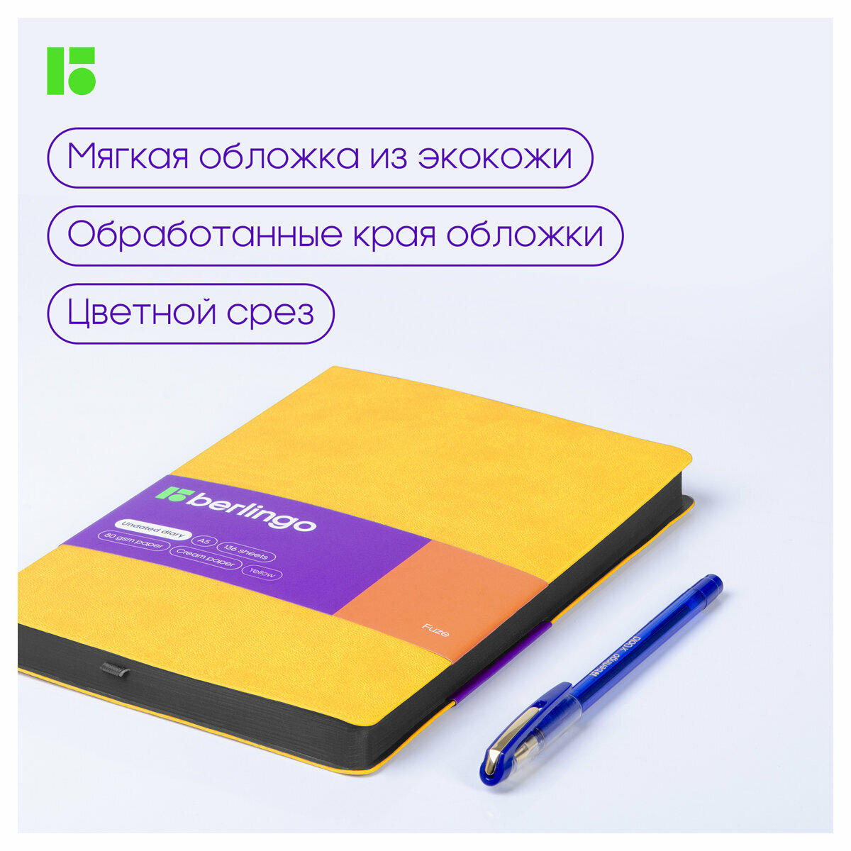 Отзывы на Комплект 3 шт, Ежедневник недатированный, А5, 136л., кожзам, Berlingo "Fuze", цветной срез, желтый