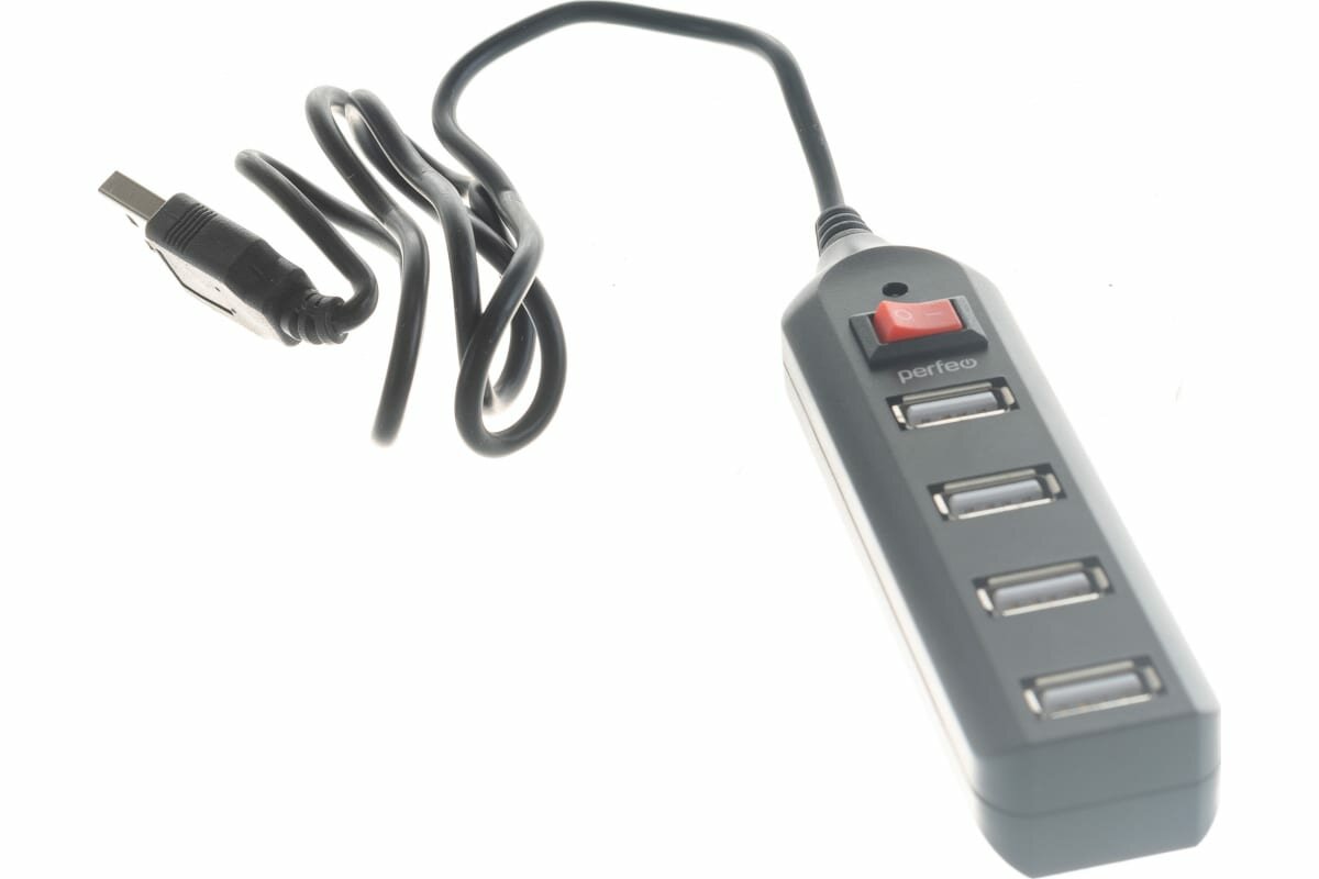 10 цен на Концентратор 4 порта, USB 2.0 Perfeo, (PF-HYD-6001H) чёрный