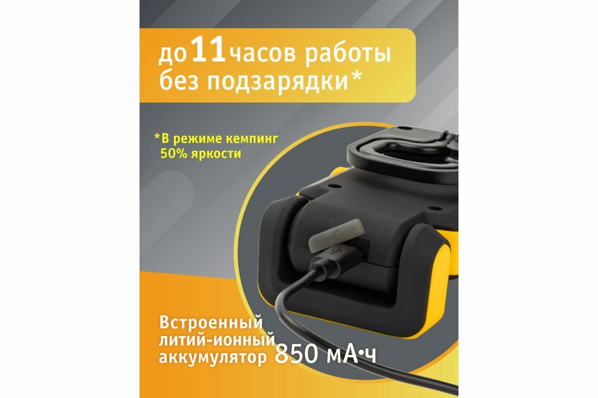 Фонарь Navigator NPT-W07-ACCU для работы, 1LED 1Вт +1COB 3Вт, аккумулятор 3.7В 14083