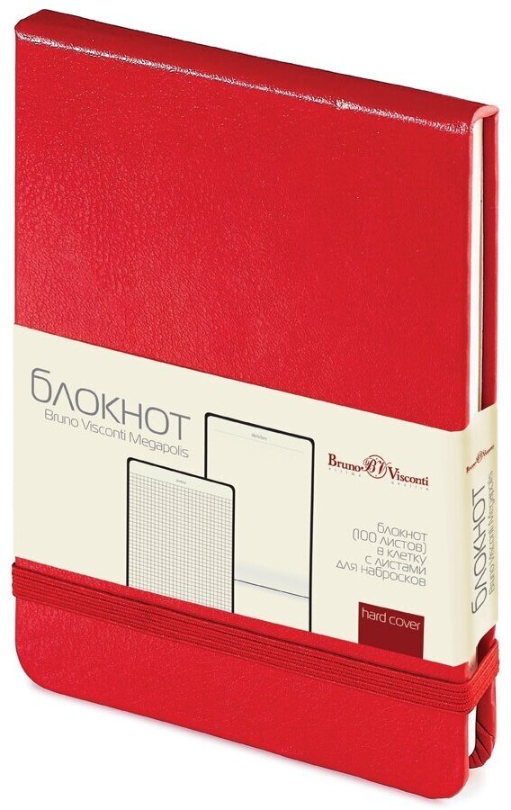 Блокнот Bruno Visconti Megapolis А6 100 листов красный в клетку на сшивке с фиксирующей резинкой (90х130 мм), 324754 466 ₽
