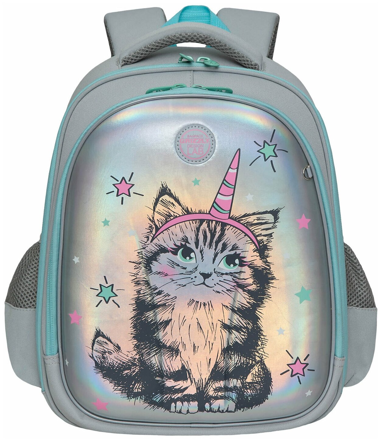 Ранец для девочек Grizzly анатомическая спинка, c брелоком, для девочек, "Magic cat", 36х28х20 см