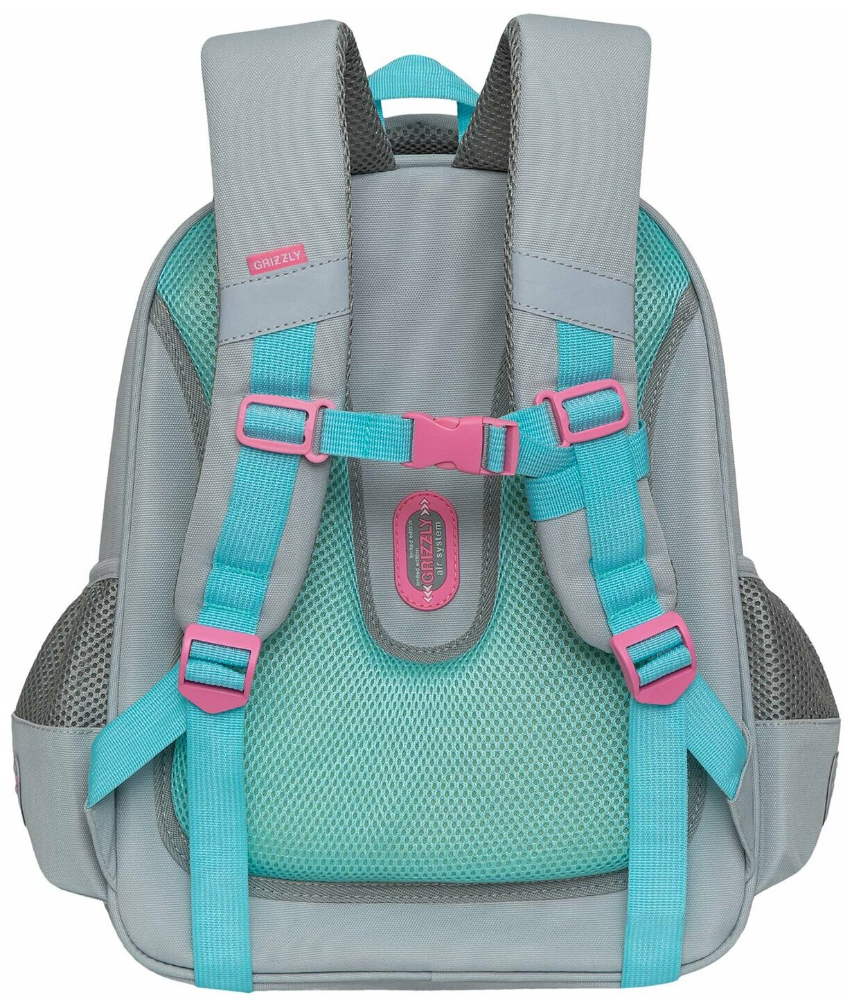 Рюкзак школьный с ортопедической спинкой Grizzly RAz-286-2 серый, на ножках, вес 990грамм, 2 отделения, 36x28x20см